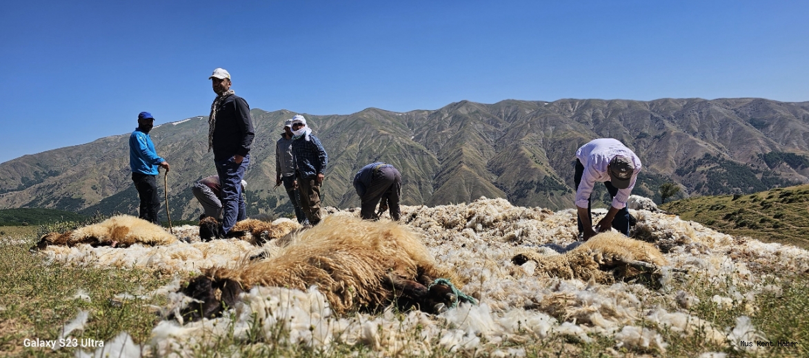Muş'ta havaların ısınmasıyla birlikte yaylalara çıkan besiciler, hayvanlarının yazlık bakımlarını yapmaya başladı. Kurtik Dağı civarlarında koyunlarının yünlerini kırpan besiciler, aynı zamanda bu yünleri satarak gelir elde ediyor.