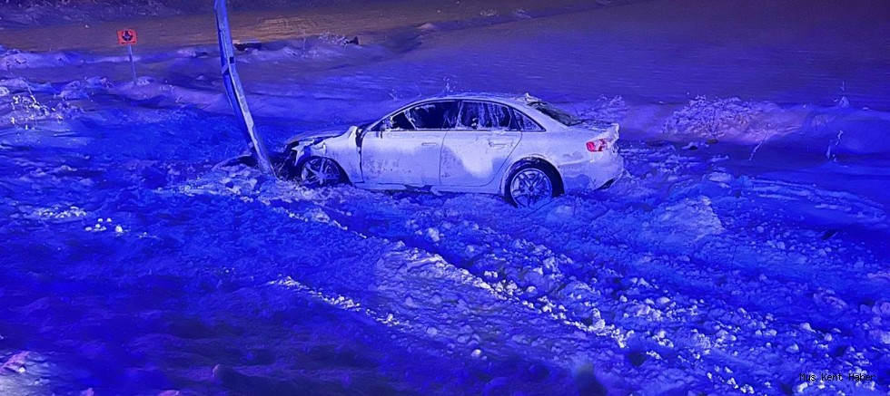 Muş’un Hasköy ilçesi girişinde, Bitlis istikametinden gelen bir otomobil kaygan yol nedeniyle direksiyon hakimiyetini kaybetti. Yoldan çıkan araç, şarampolde bulunan elektrik direğine çarparak durabildi.