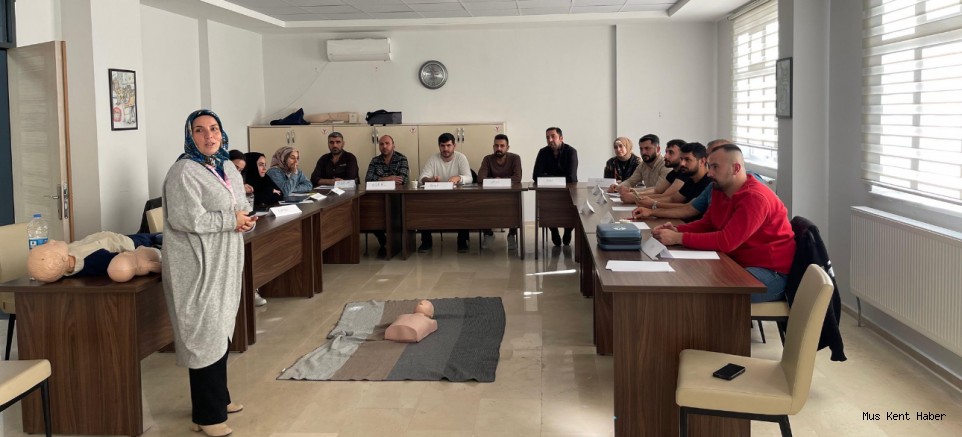 Muş İl Sağlık Müdürlüğü’ne bağlı İl Ambulans Servisi Başhekimliği Eğitim Birimi tarafından, “Her Evde Bir İlk Yardımcı” projesi kapsamında Barko Tekstil çalışanlarına yönelik Temel İlk Yardım Eğitimi düzenlendi.