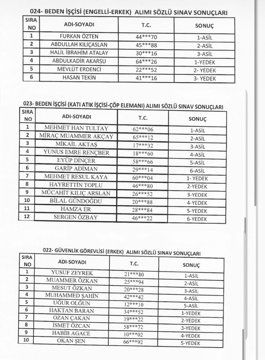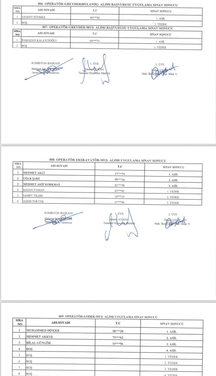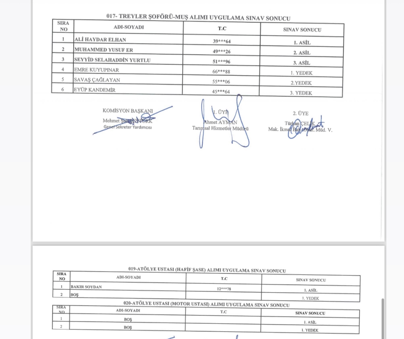 İşçi alım sonuçları, Muş İdare Kültür ve Turizm İnşaat Gıda Tarım Hizmet Alımı Sanayi ve Ticaret A.Ş.'nin resmi internet sitesinde yayınlandı. Başarılı olan adaylar, gerekli evrakları hazırlayarak belirtilen tarihlerde şirket merkezine teslim etmekle yükümlü olacaklar.