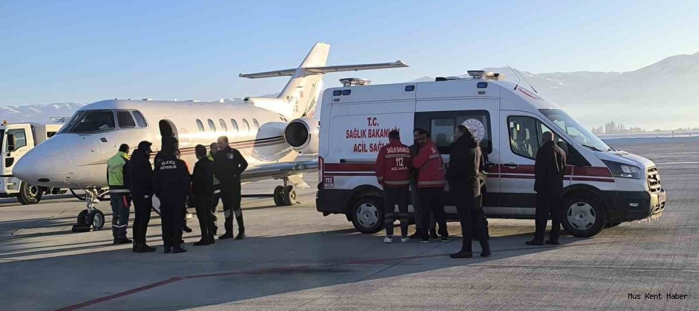 Muş Devlet Hastanesinde tedavi gören 30 yaşındaki Muhammed Raşit. B.’nin ileri tetkik ve tedavi ihtiyacı nedeniyle harekete geçildi. Acil sağlık hizmetleri kapsamında hastane ambulansıyla Muş Sultan Alparslan Havalimanı’na getirilen hasta, burada hazır bekleyen Sağlık Bakanlığına ait uçak ambulansa alınarak Ankara Yenimahalle Eğitim ve Araştırma Hastanesine sevk edildi. Nakil sürecinin, uzman sağlık ekipleri eşliğinde ve gerekli tüm tıbbi donanım sağlanarak güvenli şekilde gerçekleştirildiği bildirildi.