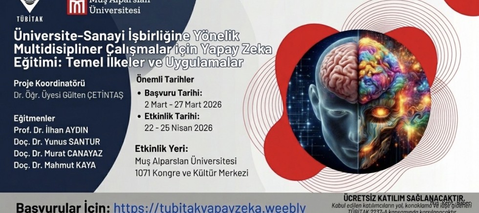 Etkinlik, 22-25 Nisan 2026 tarihleri arasında 1071 Malazgirt Kongre ve Kültür Merkezi’nde gerçekleştirilecek. Başvurular 2-27 Mart 2026 tarihleri arasında online olarak yapılabiliyor. Katılım ücretsiz olup, kabul edilen katılımcıların yol, konaklama ve iaşe giderleri TÜBİTAK 2237-A Programı kapsamında karşılanacak. Başvuru ve detaylı bilgiler ise tubitakyapayzeka.weebly.com adresinde yer alıyor.