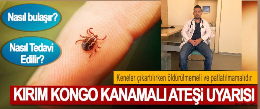 Muş Devlet Hastanesi Enfeksiyon Hastalıkları Polikliniği’nde görev yapan Uzm. Dr. Nihat Türkan; Kırım kongo kanamalı ateşi çoğunlukla kenelerin insanlara tutunması ile bulaşan viral bir enfeksiyon hastalığıdır. İnsanlarda ölümle seyredebilen ağır hastalık tablosu yapmasına rağmen hayvanlarda semptom göstermeden virüs çoğalmaya devam edebilir. Bu nedenle hayvanların kan ve vücut sıvıları ile çıplak elle temasla, kenelerin çıplak el ile ezilmesi ile de hastalık bulaşabilmektedir.